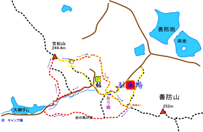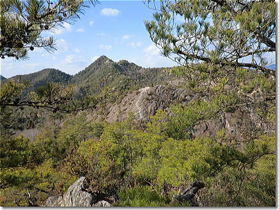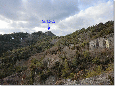 吊り橋への途中、笠松山山頂へ続く稜線を望む 13:26 |