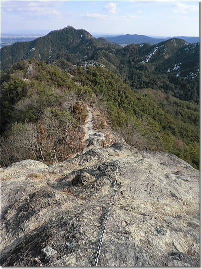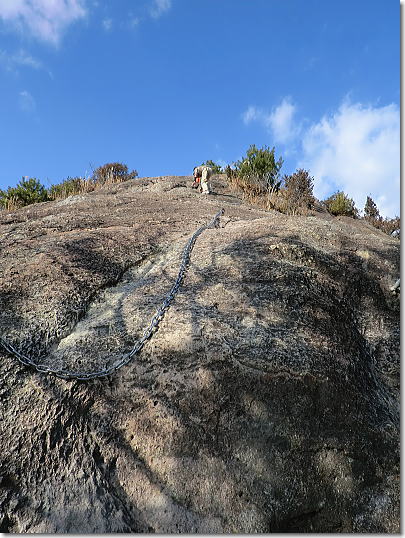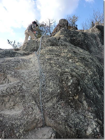 山頂手前の石峰を鎖を頼りに登る 14:22 |