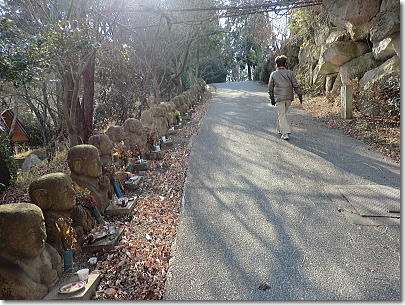 石彫アトリエ館で彫られた石仏が並ぶ道を進む