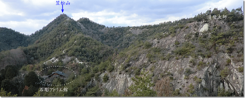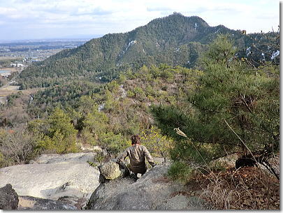 | 東尾根岩場から笠松山、達磨大師、古法華自然公園の石彫アトリエ館を望む 15:03 |