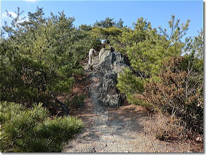 | 七福神の石像の横を笠松山山頂に向けて 14:10 |