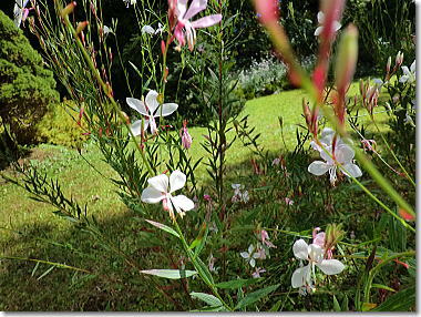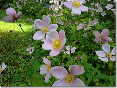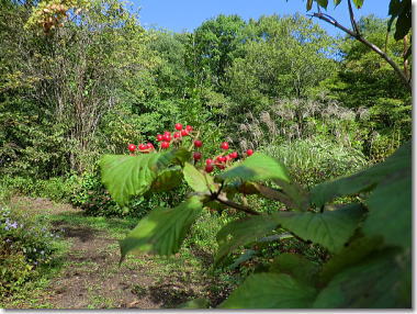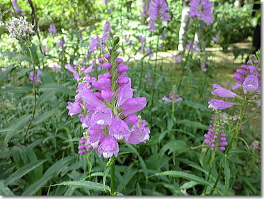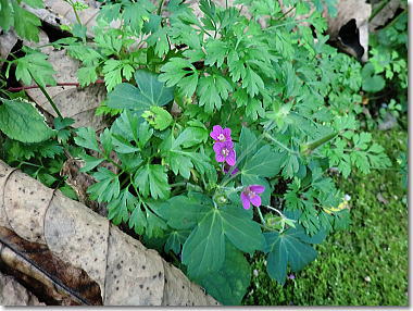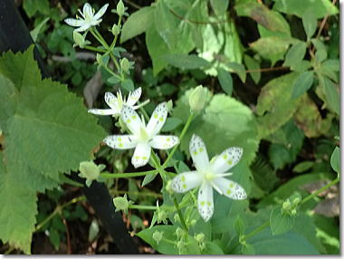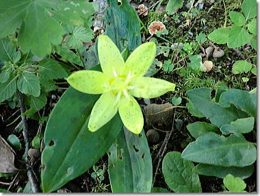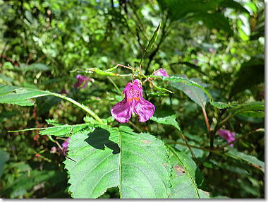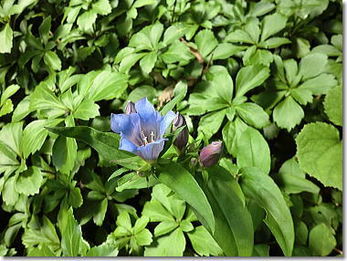 この瀞川平に平成9年6月15日但馬高原植物園は設立されました。日量5,000tの湧水と樹齢1,000年以上の大カツラの保護をテーマに開園された植物園です。標高680m、面積は17haで、そのうち7haを手を加えて管理されています。園内には樹木、草花の自生植物約2,000種類と、それに類する300種類ほどの植物を見ることができます。ゆっくり散歩するには最適の公園です。ひっそりと可愛い草花が出迎えてくれました。 |