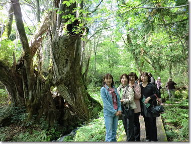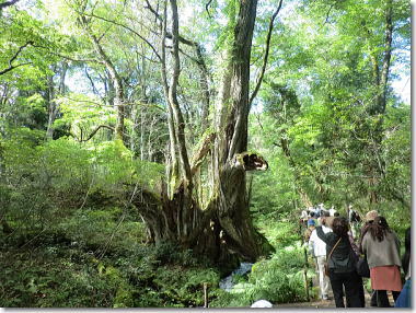 但馬高原植物園のシンボルで、幹周り16mの大カツラ |