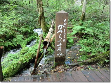日量5,000tもの湧水は、この園内のシンボル「大カツラ」の木が瀞川山から呼び寄せているそうです。夏でも水温が10度前後という、ひんやり冷たいこの自然水、わたし達も、もちろん味わいました。