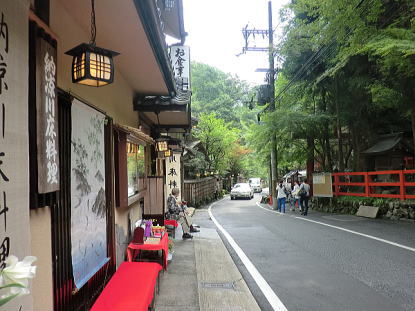 | 川床のお店が並ぶ道を貴船神社に向けて |