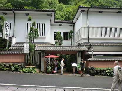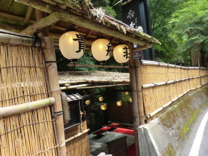 貴船神社、手前の貴船荘を覗き見る |