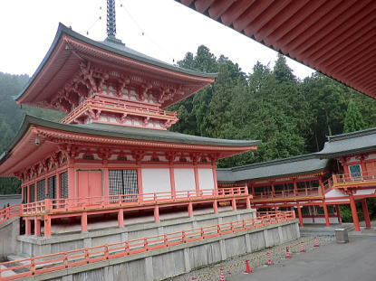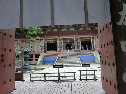 文殊楼への階段から根本中堂を望む