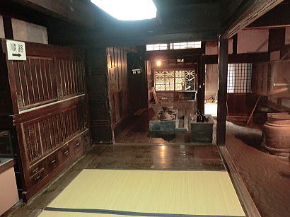 | 5年の歳月をかけ明治12年に完成した吹屋商人の家。吹屋を代表する妻入の入母屋型建物で、ケヤキ、栗、桜など最上級の用材が惜しげもなく使われ、屋根は見事な石州本瓦葺です。 |