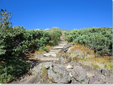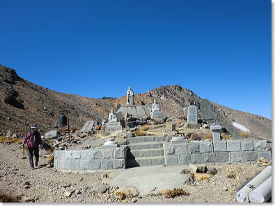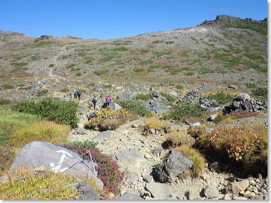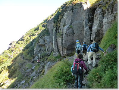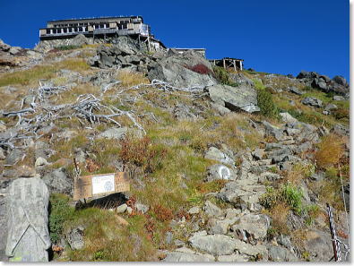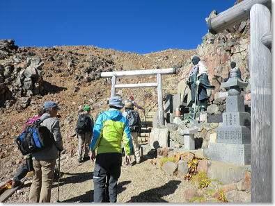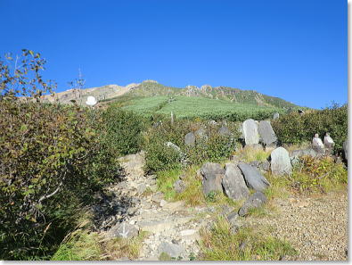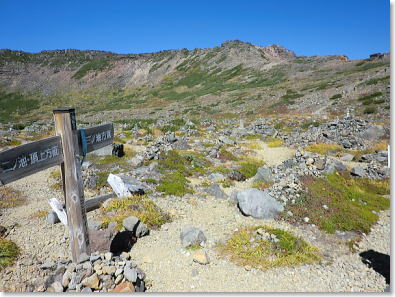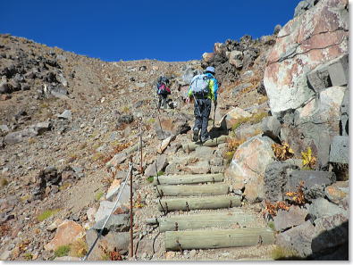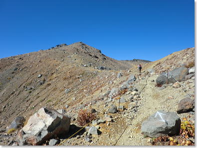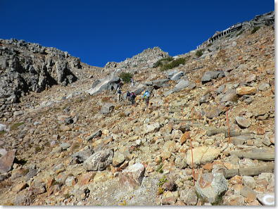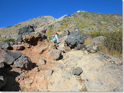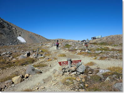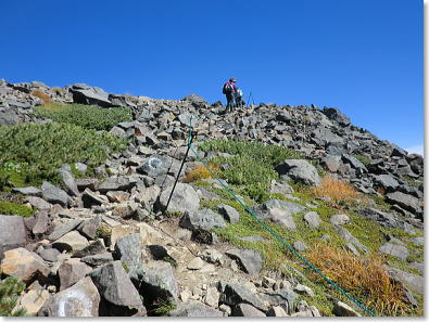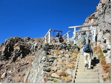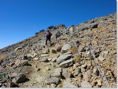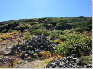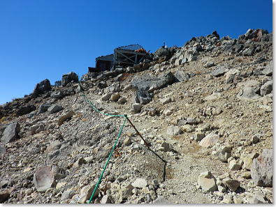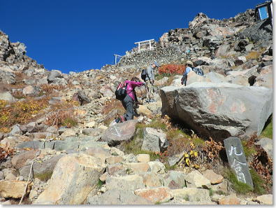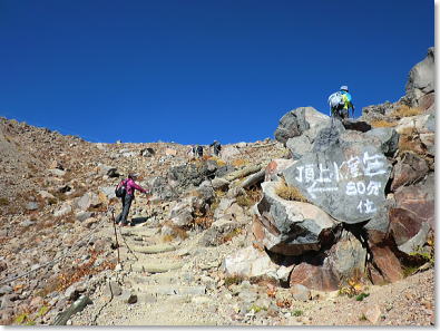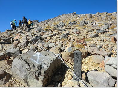 | 9合目(標高2900m)の石碑の横を登る 9:00 |