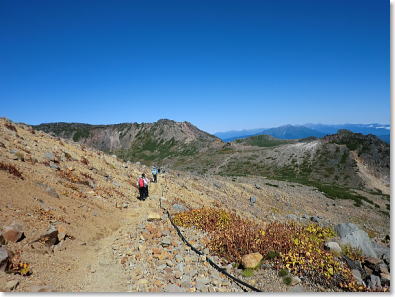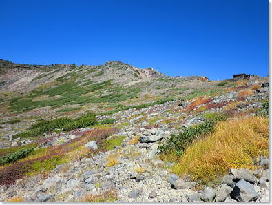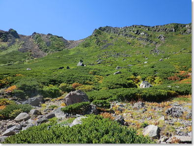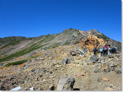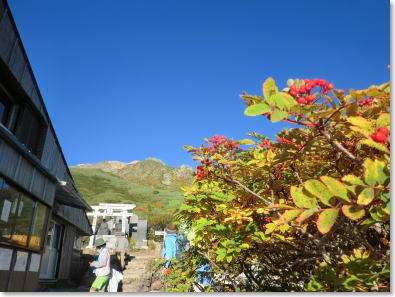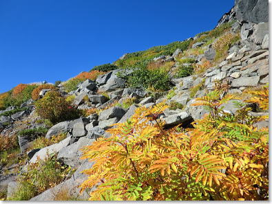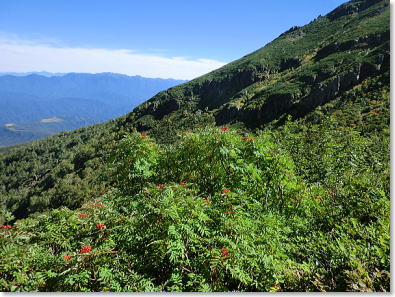 山頂を望む。紅葉にはまだ早いが、ナナカマドの