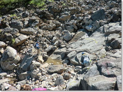 石がゴロゴロとしていて足場が悪いので滑らないように