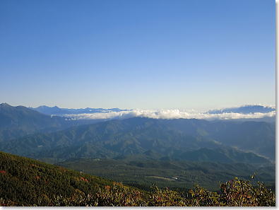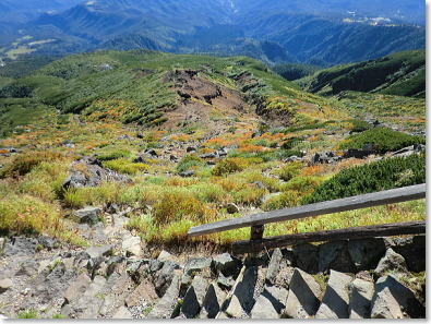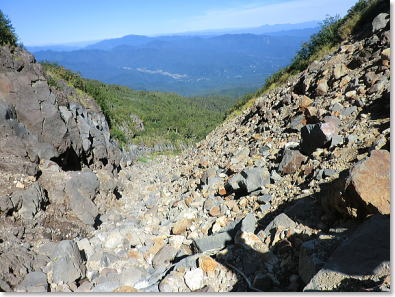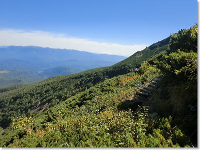 | 石室山荘階段から・・黒沢口登山道を眼下に見下ろす眺めは最高。 8:44 |