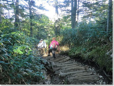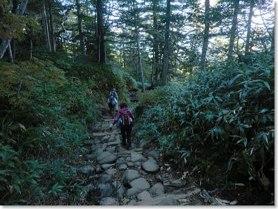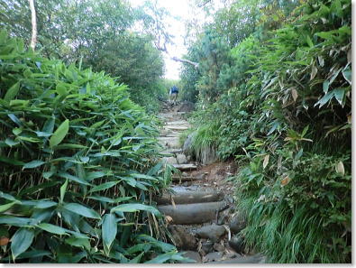 ロープウェイ飯盛高原駅から8合目女人堂まで1.6k原生林の中の歩きです。