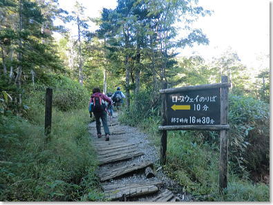 ロープウェイ乗り場まで10分の看板を見て、ほっ