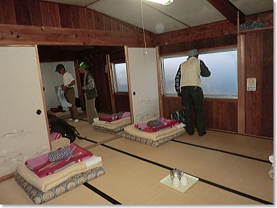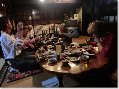 | 山小屋での夕食です.宿泊客は少なくゆっくり食事をすることができました。 |