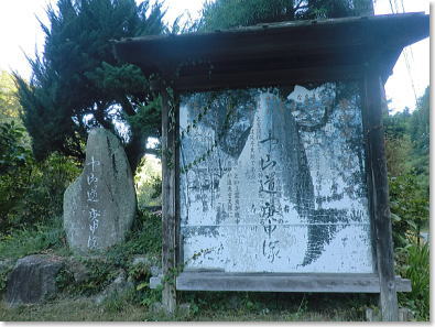 石室山荘宿泊・休憩の看板が、もう一息 頑張れ