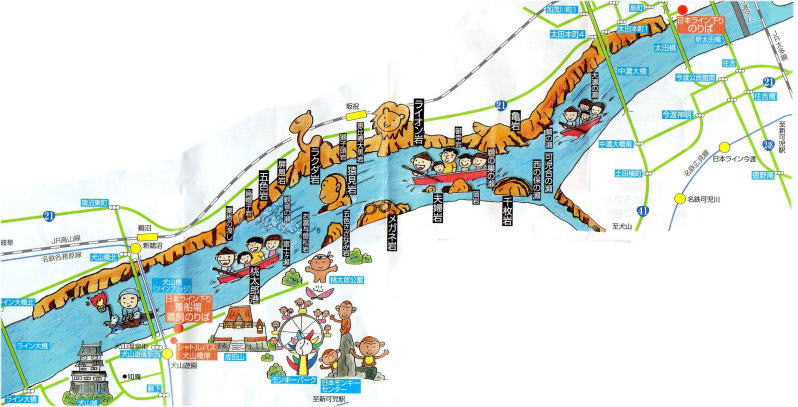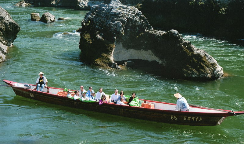 岐阜県・美濃太田から愛知県・犬山橋下までの約13km、。奇岩怪石がつくり出す渓谷美と