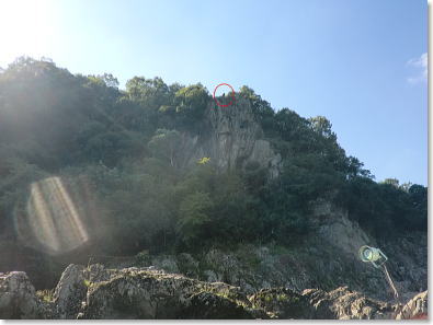 | 岩山の山頂にお猿が座っているような岩が 11:27 |