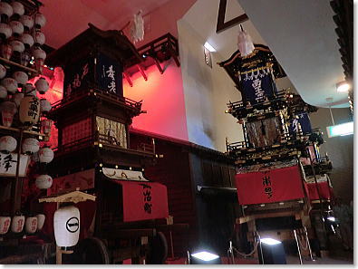 犬山祭に曳きだされる山車(犬山では車山と書いて「やま」と読ませる)13両のうち4両の実物を展示