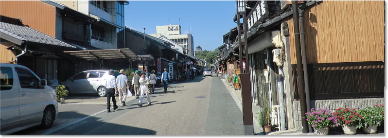 | 城下町散策を満喫し駐車場へと途中、犬山城を望む 13:55 |