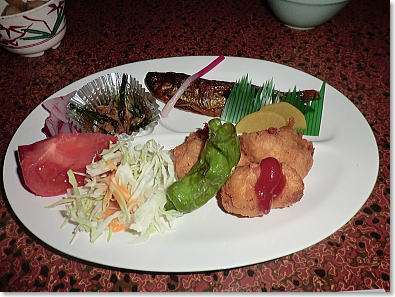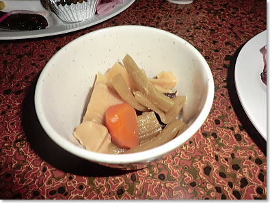 民宿こおしんづか 夕食 酢の物・五平餅・馬刺し・