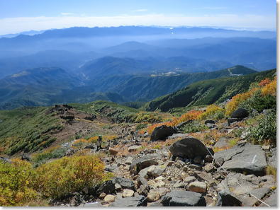 紅葉には少し早いかなーと思っていたが山頂に近づくにつれ綺麗な紅葉が見ることが出来た。 |