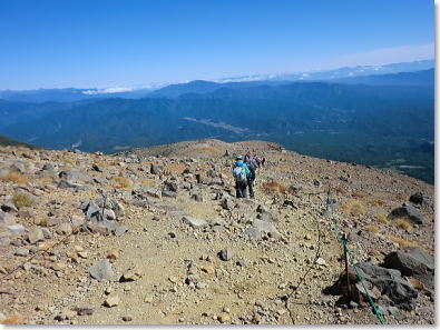 九合目からすぐ近くに頂上が見えるが、見た目以上に時間が掛かります。