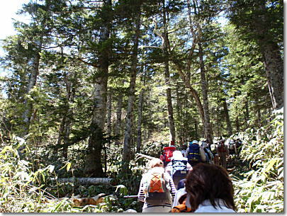 一歩はいると、鬱蒼としたオオシラビソの林、