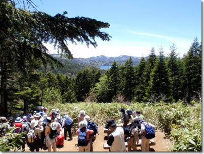 沼山峠展望台から尾瀬沼を望むが、アオモリトドマツや樅の木などの針葉樹が生長して視界をさえぎるようになり、現在は湿原と沼が僅かに望めるだけになってしまった。12:21 |