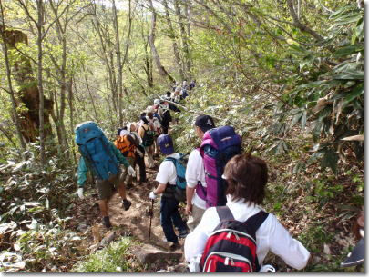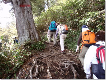 段小屋坂・木の根っこの急坂を登る 15:48 |