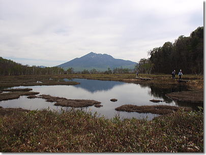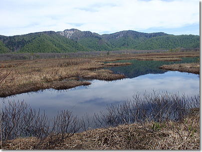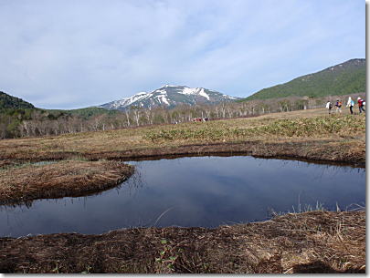 燧ケ岳へ向かって広がる湿原で地溏が点在し