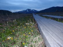 | 標高1665mの尾瀬沼は、その昔、燧ヶ岳の噴火によりせき止められてできた湖です。 |