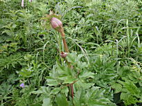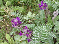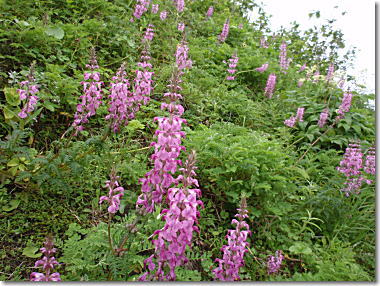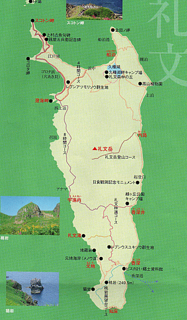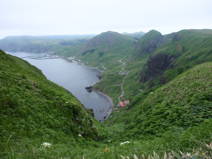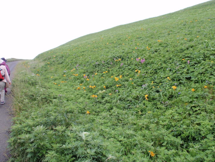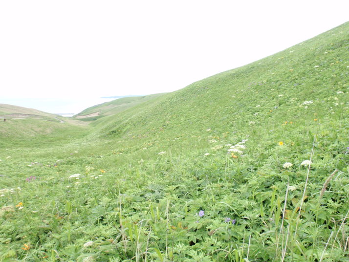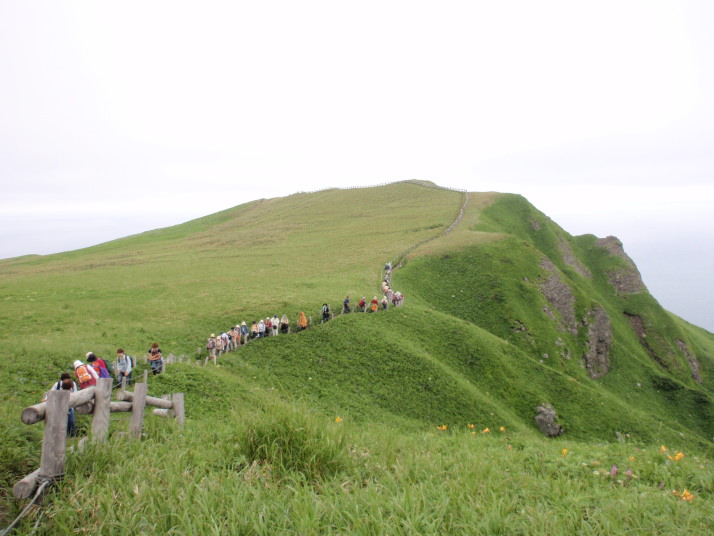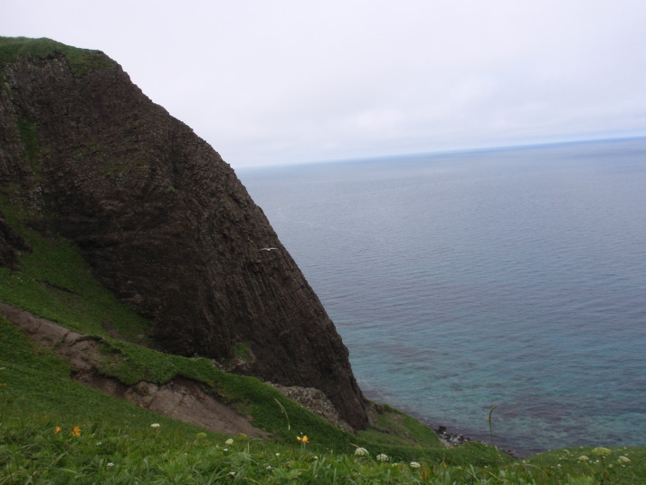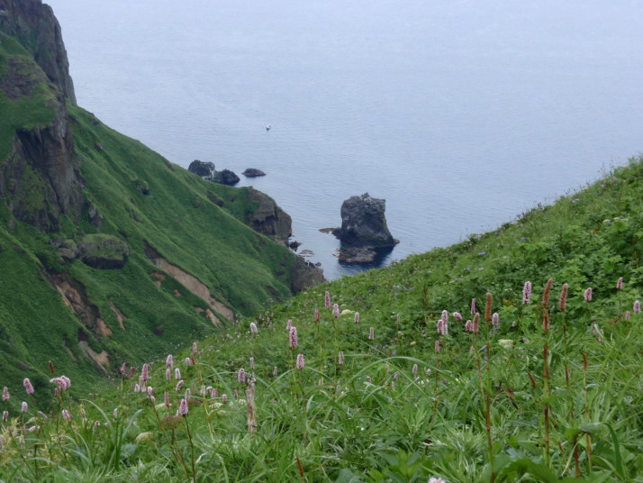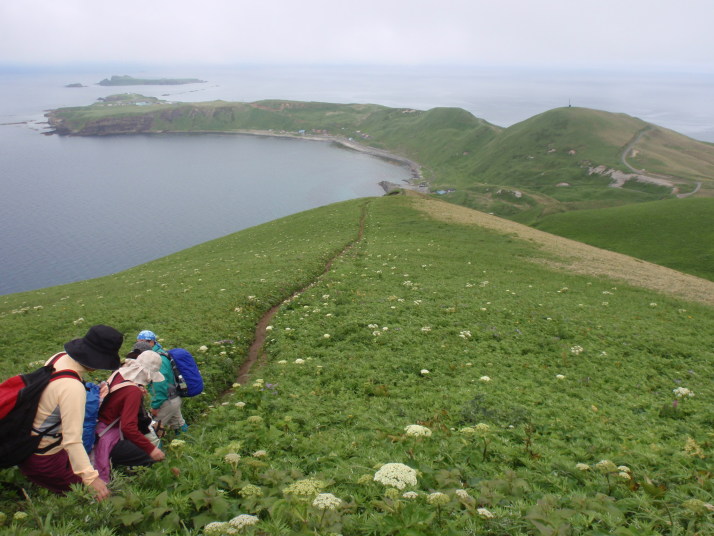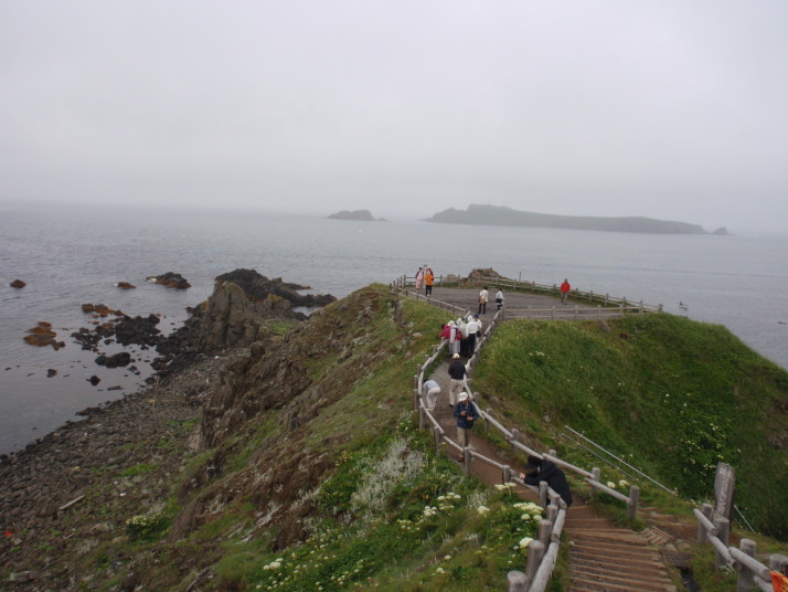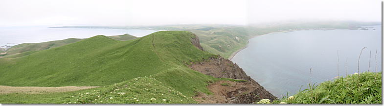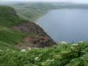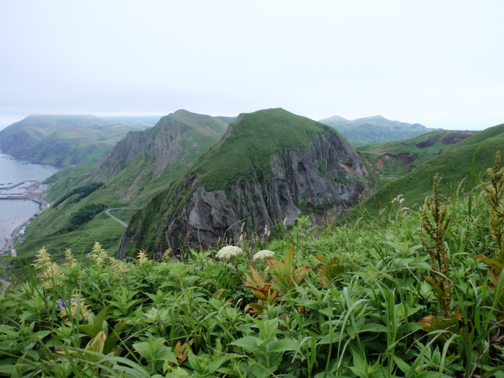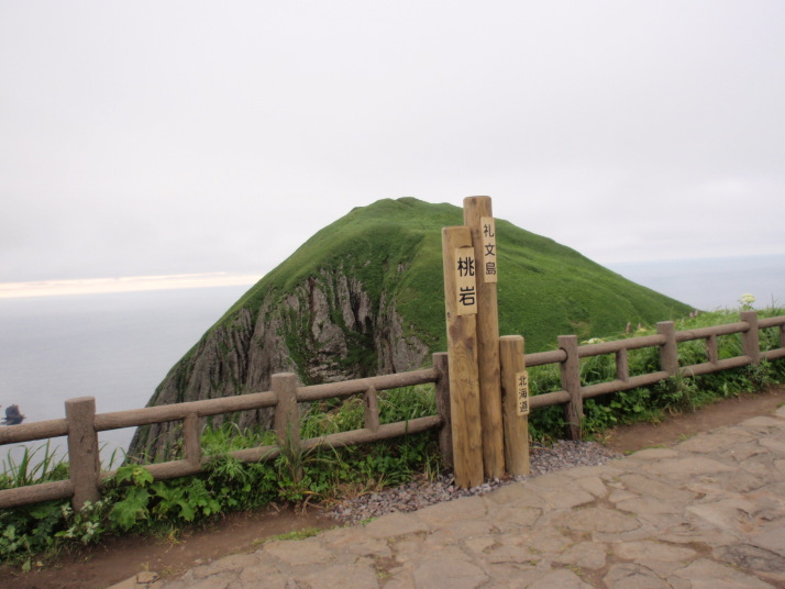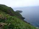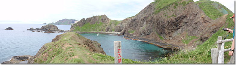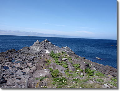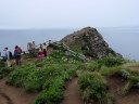 利尻島の玄関口鴛泊港を見守るようにたたずむペシ岬。気軽に散策を楽しむことができ、徒歩30分で頂上まで登れます。頂上からの眺めはすばらしく、鴛泊市街を一望することが出来るそうですが、昼食後、時間が無く頂上までは行けなかった。海岸まで散策(海岸までは崖崩れの為通行禁止になっていたが) |