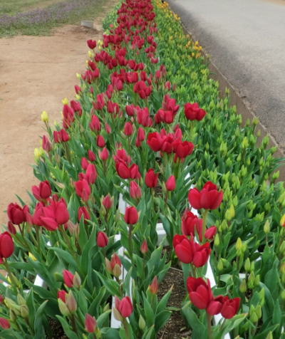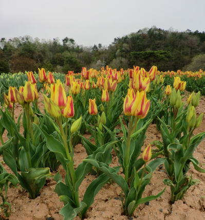 今年の花絵は・・・「フラワーツリー」 1.5haのみはらしの丘をチューリップで描かれます。