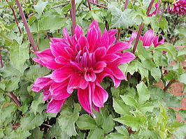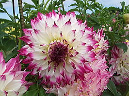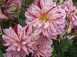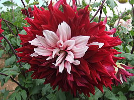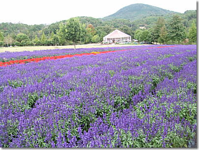 ゆり園入口横に赤・白・紫のサルビヤの花絵