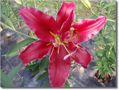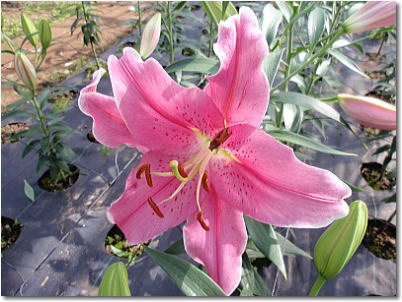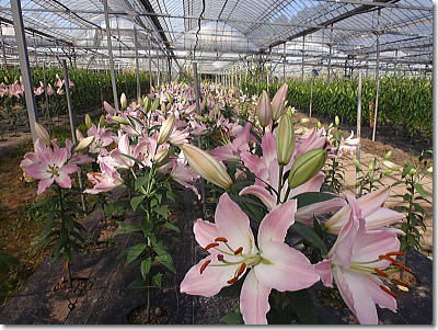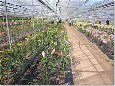 | 昼食後、せらワイナリーからすぐ近くの世羅ゆり園直行です。切花(1本350円・球根1個150円〜250円)と球根をおみやげに買って帰りました。 |