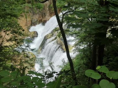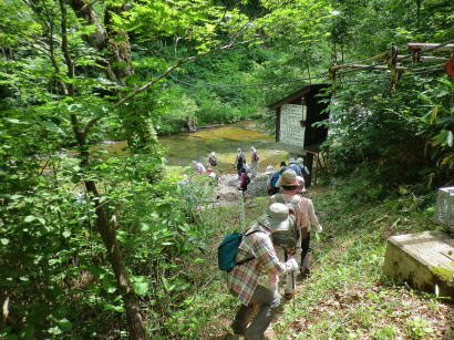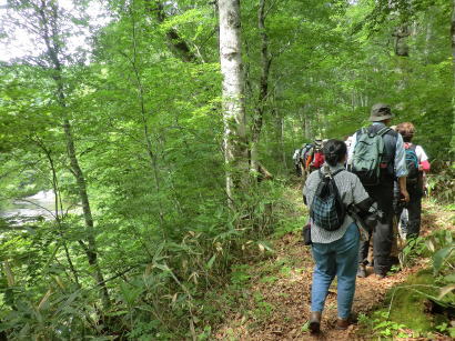午後からは志賀グランドホテルの車で30分の所にある奥志賀渓谷ハイキングです。遊歩道2.3km 奥志賀林道沿いの特に美しいコースです。
