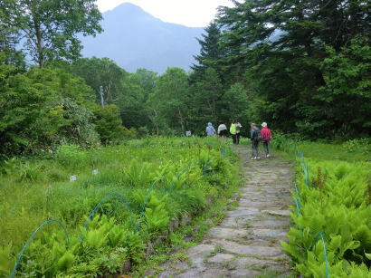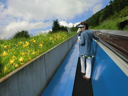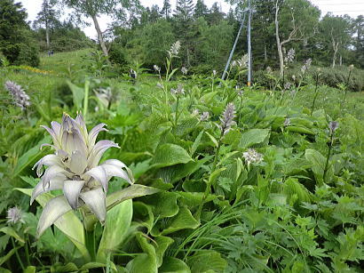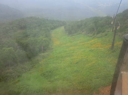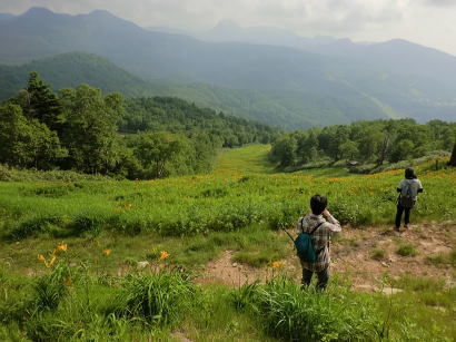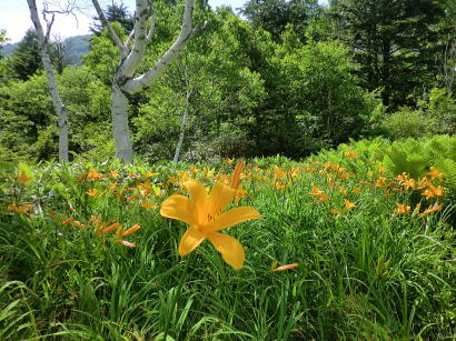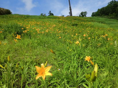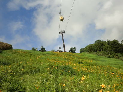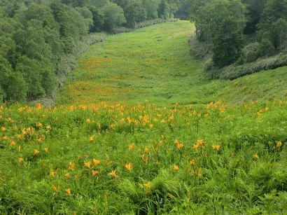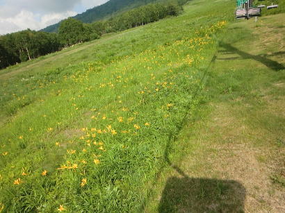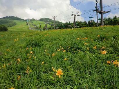 | 東館山高山植物園の斜面はニッコウキスゲの群生 冬はゲレンデ |