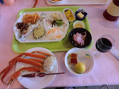 2日目の夕食もバイキング。今回はワインで乾杯です。 |