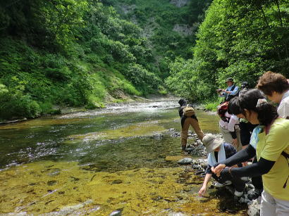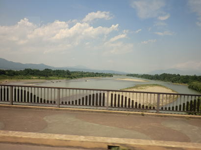 | 川原に降りて行きます。水がめっちゃ冷たいです。 |