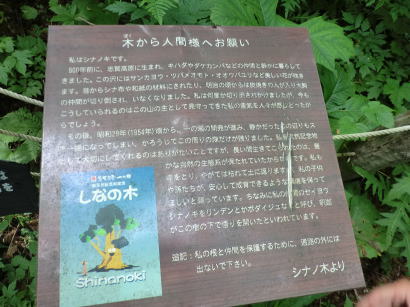 樹高23m 根回り9.5m 樹齢推定約800年 シナノキでは全国で1,2を争う大木だそうです。 |