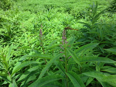 ヤナギランの群生・・・ほとんど蕾 トンボがヤナギランに・・・
