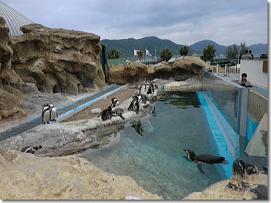 関門海峡を再現した巨大な関門海峡潮流水槽やシロナガスクジラの骨格標本や世界のふぐを展示。イルカとアシカのショーが人気。フンボルトペンギンも愛嬌を振りまいていました |