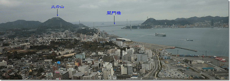 海響館前から火の山、関門橋を 16:01