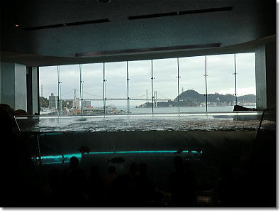 巨大な関門海峡潮流水槽から関門橋を