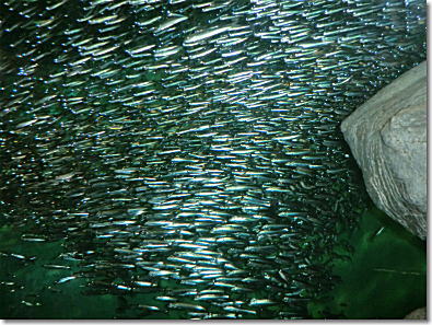 白波にマイワシの群が大きく乱れ、