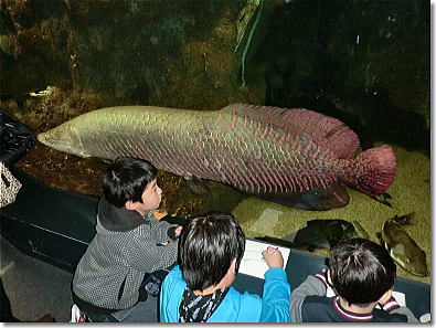 ピラルクの水槽の前で子供達が絵を 15:52 |