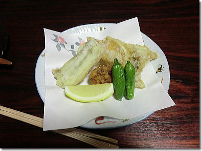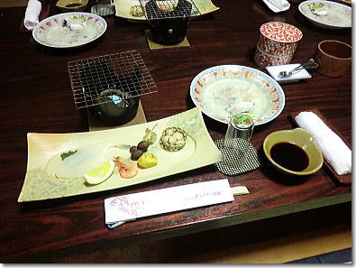 | 付き出し(ふぐ一夜干、むかご、エビ、銀杏、くり) |