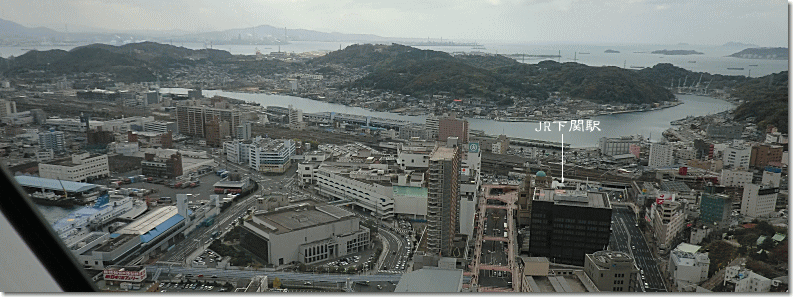 | 海峡ゆめタワーからJR下関駅(中央)方面を望む 13:33 |