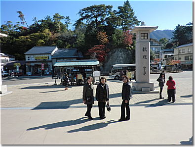 宮島桟橋到着。歓迎の石塔が 12:48 |
